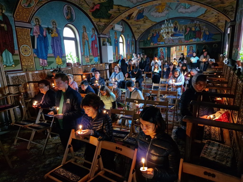 Seara s-a desfășurat într-o atmosferă prietenoasă, firesc și într-un Duh de rugăciune deosebit. Debutul serii a însemnat prezentarea pe scurt a motivului prezenței noastre în Biserica parohială și toată recunoștința s-a concretizat foarte repede în zeci de îmbrățișări de grup. Au urmat apoi slujba Paraclisului Tinereții, cuvântul Pr. Vasile Dănilă adresat tinerilor pe un ton deopotrivă prietenesc și motivant și agapa de la final. Răspunsurile la strană au fost date de către voluntarii Emanoil. Ne-am simțit, pur și simplu, ca Acasă!