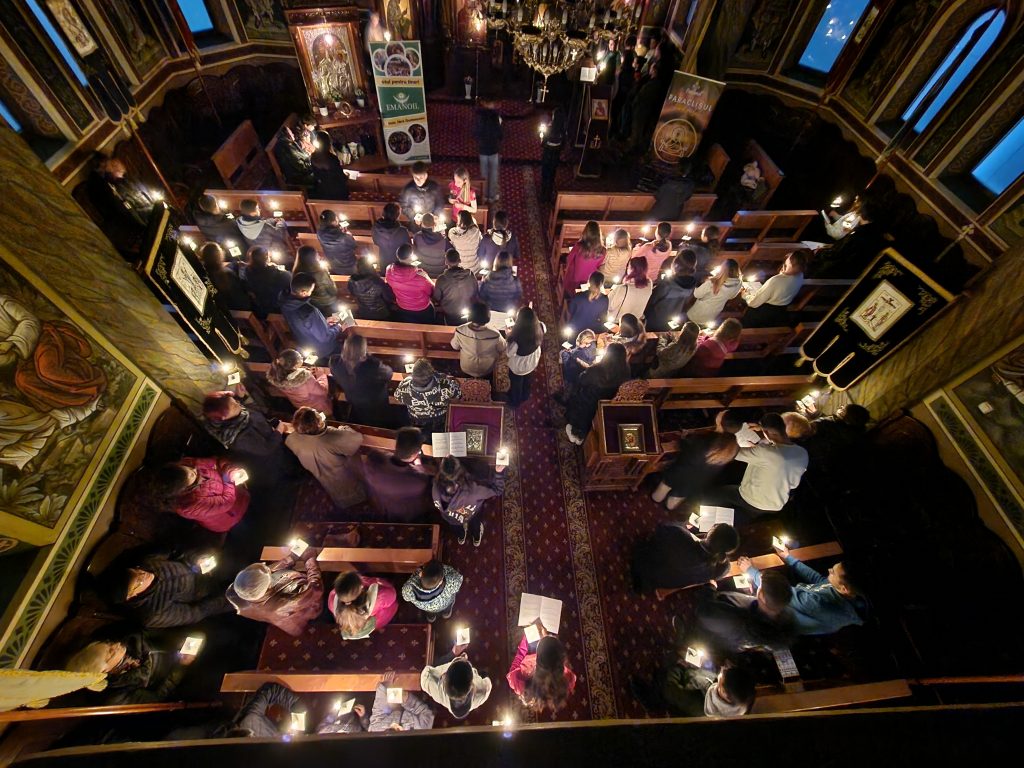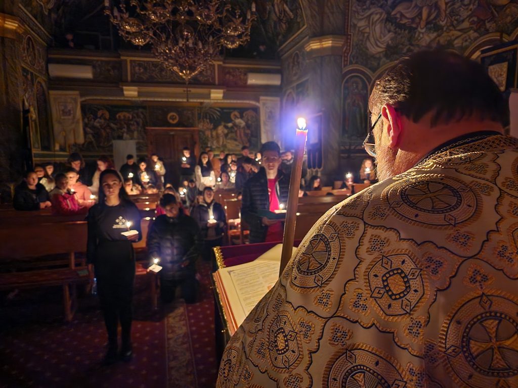 Această seară a străjuit prinderea Postului Nașterii Domnului și s-a desfășurat într-o atmosferă plină așezare duhovnicească. Slujba Paraclisului Maicii Domnului a fost momentul central, urmat de cuvântul de învățătură al pr. paroh Lascu Petru care ne-a vorbit pe înțeles și ne-a primit cu brațele deschise, oferindu-ne prilejul de a „prinde postul” împreună în rugăciune și comuniune. Finalul serii a fost marcat de primul nostru colind pentru acest an, cântat împreună cu toți cei prezenți, iar Agapa „de dulce”, de la final, a fost exact ce aveam nevoie. Slavă lui Dumnezeu pentru toate.
